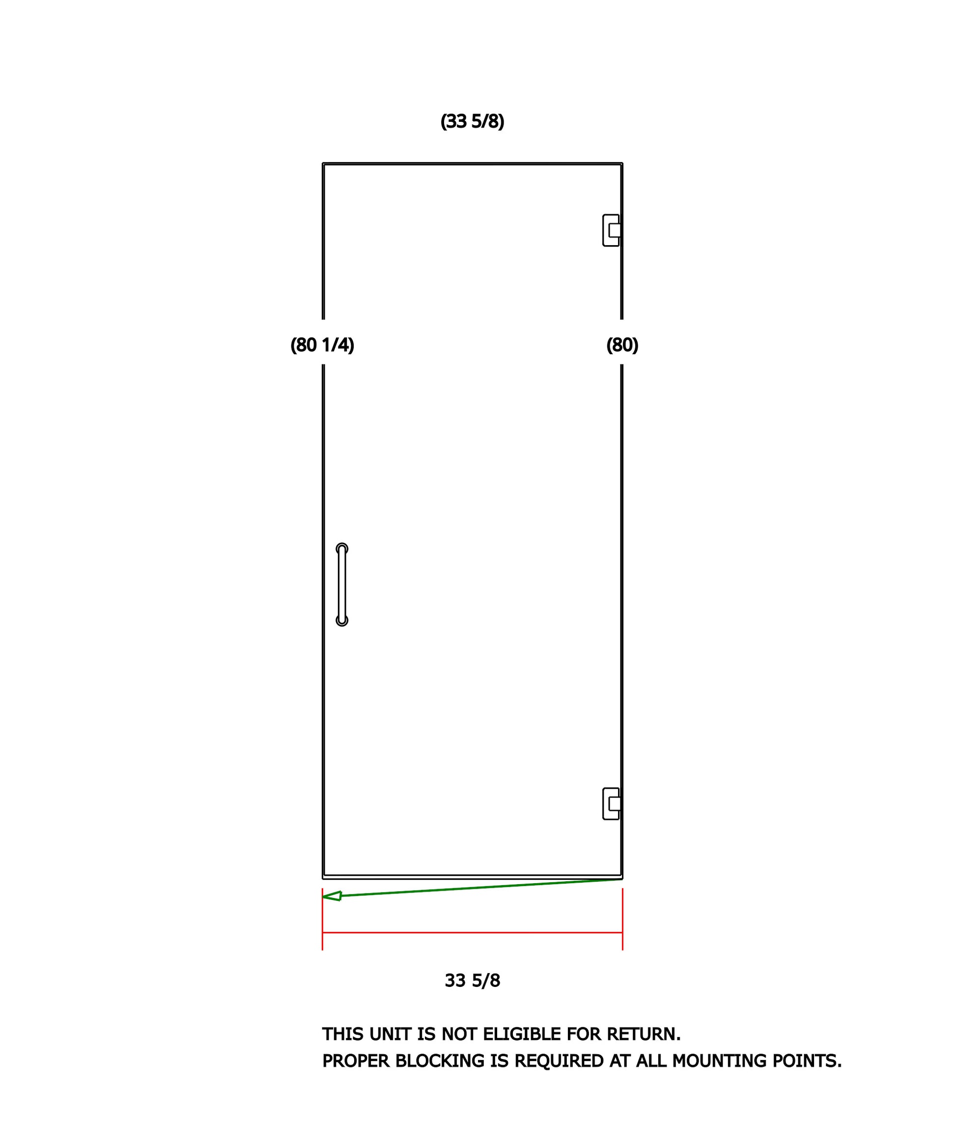 3/8"x33"x80-1/4" Chrome Pull, RCZ Hinge, Template & Installation.