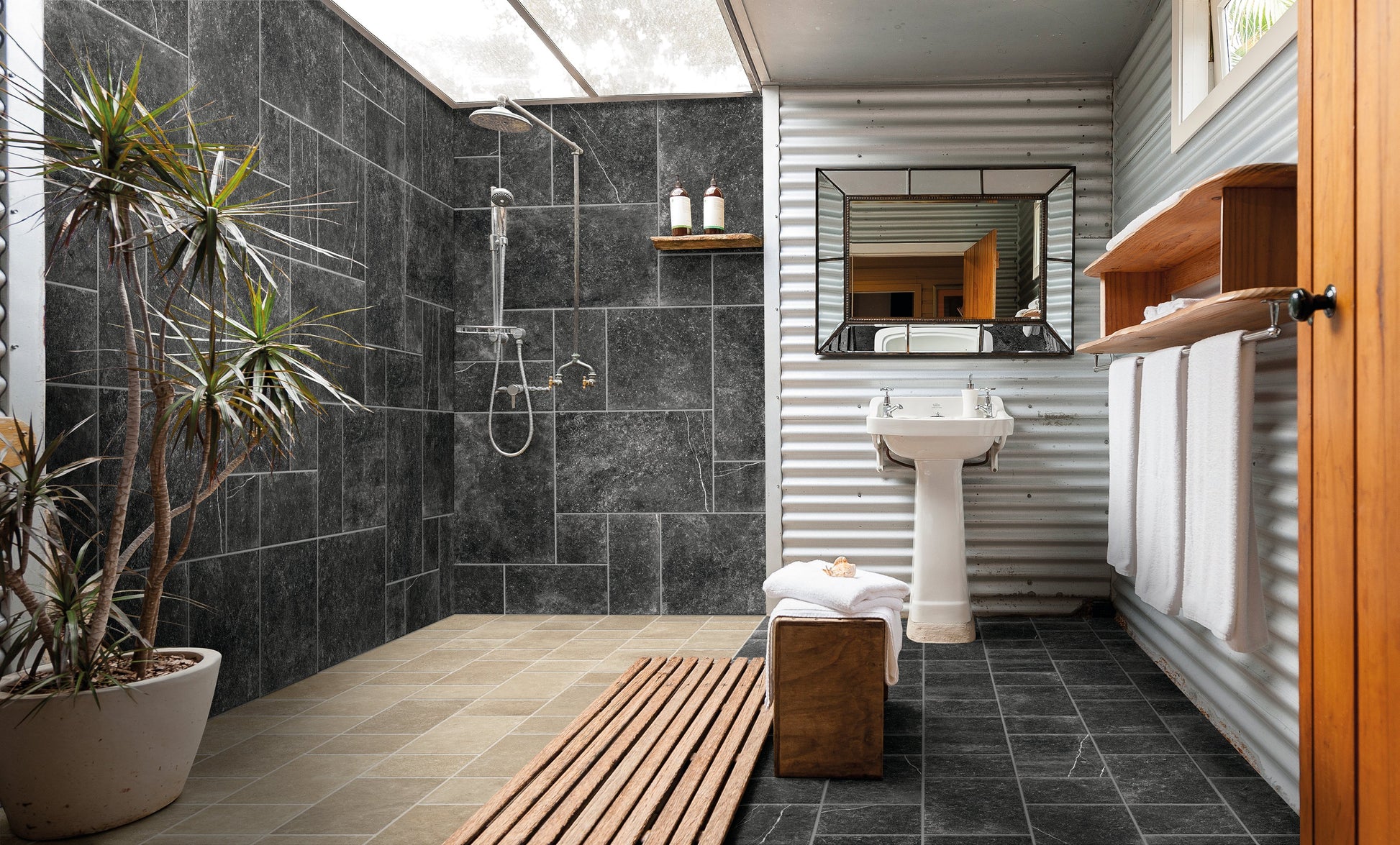 An extremely versatile product, which unleash all its charm, both indoor and outdoor. The absolute protagonists are the textures, which recall the primogenial authenticity of the stone, in a designer way.