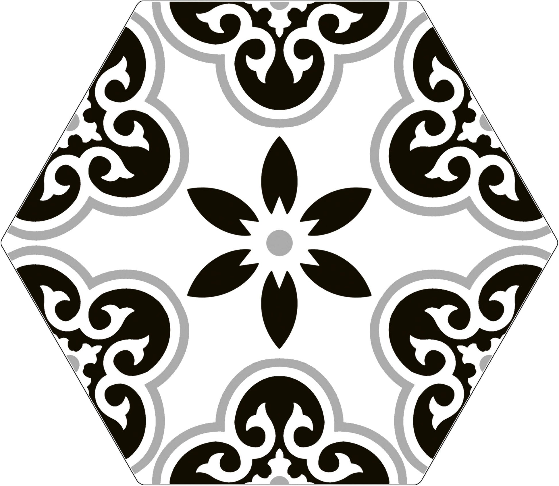 Bold encaustic tile designed for both floor and wall applications. Its hexagonal shape adds a distinctive geometric pattern that enhances any space with a stylish, contemporary edge. Crafted for durability, this tile is ideal for high-traffic areas, providing long-lasting performance without compromising on aesthetic appeal. Perfect for creating striking visual interest in residential or commercial interiors.