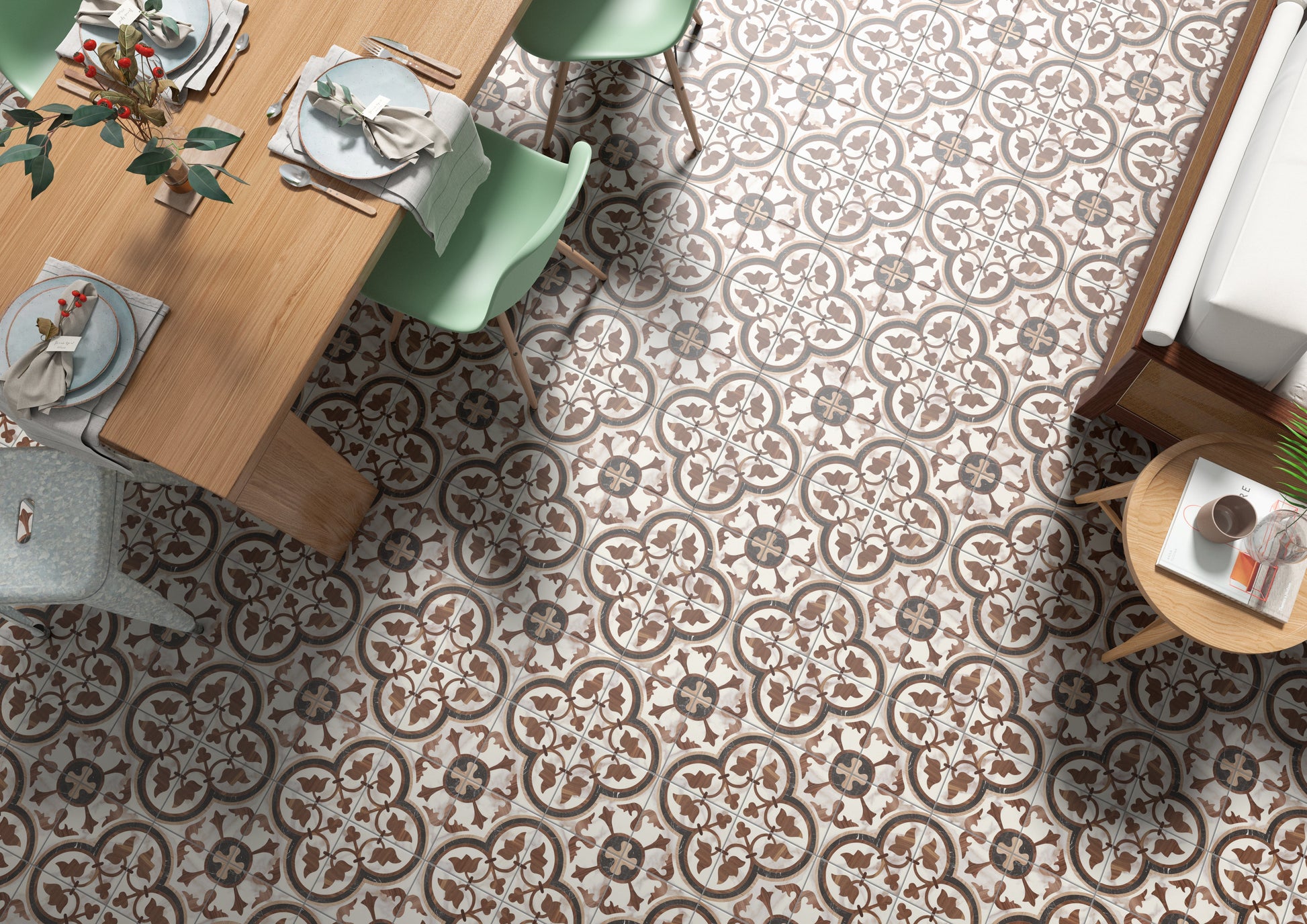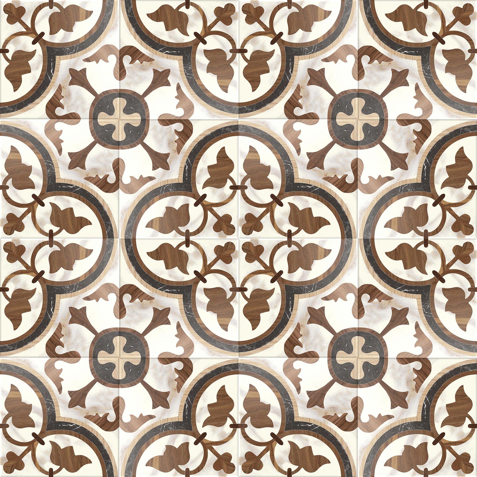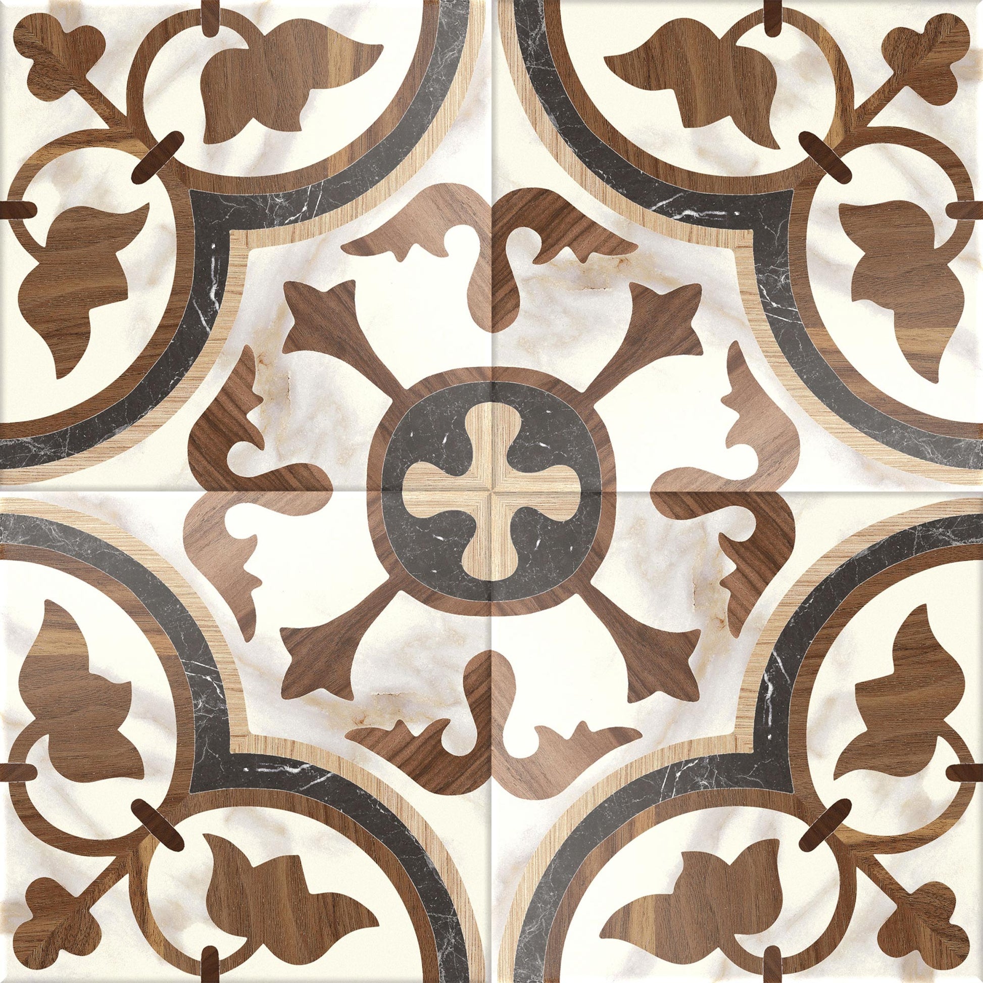 DECORATIVE ENCAUSTIC LOOK PORCELAIN WITH UNIQUE WOOD TONES
