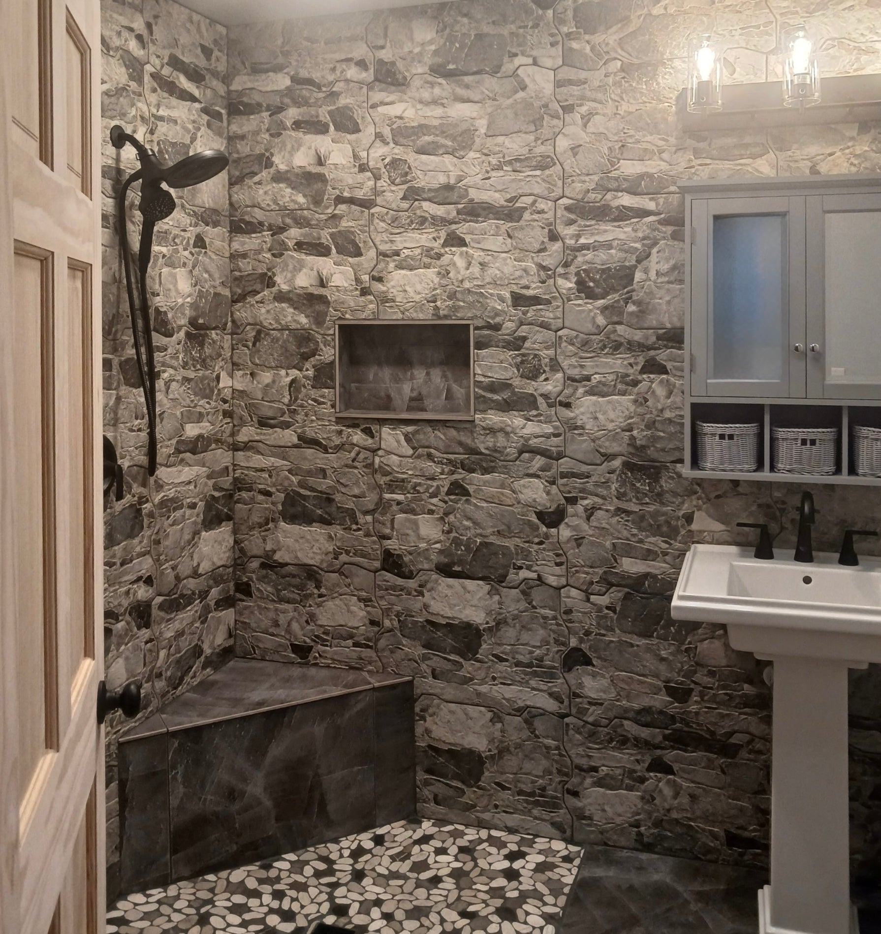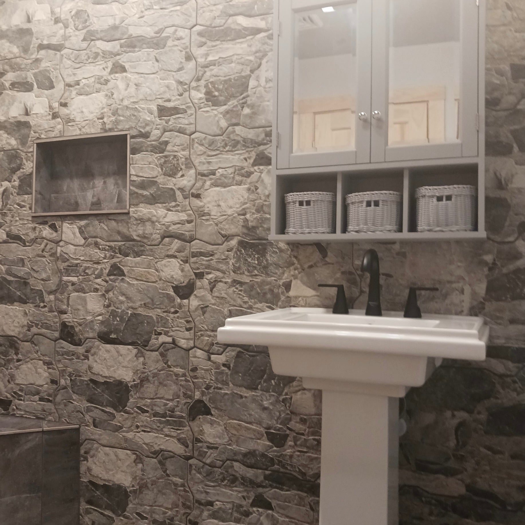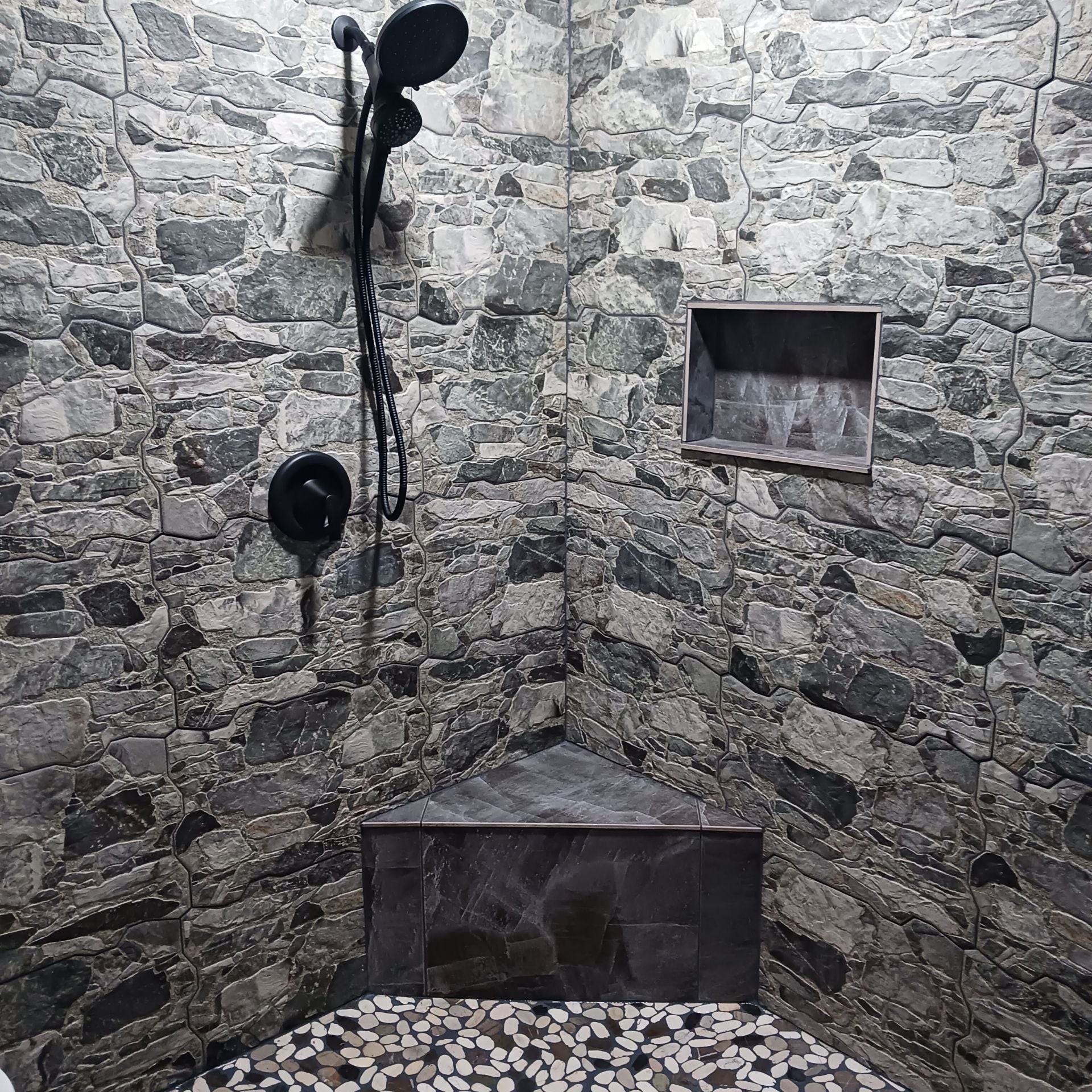 Grafito 14 x 22 gives the impression of a multi-size stone pattern with a slightly textured matte surface. Featuring a mix of stone-like shapes in varying tones of grey, this tile offers a rustic appearance. This product draws heavily from the natural appeal of stone with imitation scuffs and spots that suits a variety of looks, including vintage, natural and modern. Impervious and frost-resistant pocelain make this an ideal choice for both indoor and outdoor installations including kitchens, bathrooms, backsplashes, showers, entryways, and patios.