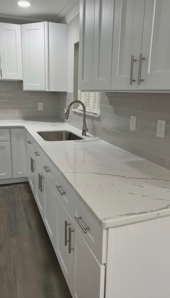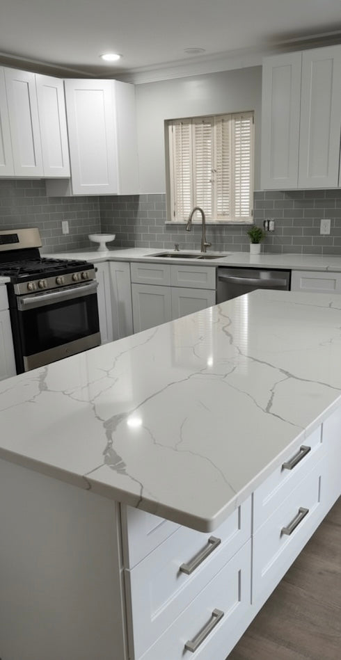 Calacatta Laza quartz brings a lively twist to classic marble beauty with its milky white base and soft brown veining that dances across the surface. Perfect for waterfall islands or brightening up cozy spots, this durable, maintenance-free quartz keeps your space fresh and fabulous. Whether it’s countertops, floors, or accent walls, Calacatta Laza turns your home into a stylish masterpiece worth admiring every day. Let your creativity run wild—this marble look is ready to make your design dreams come true!