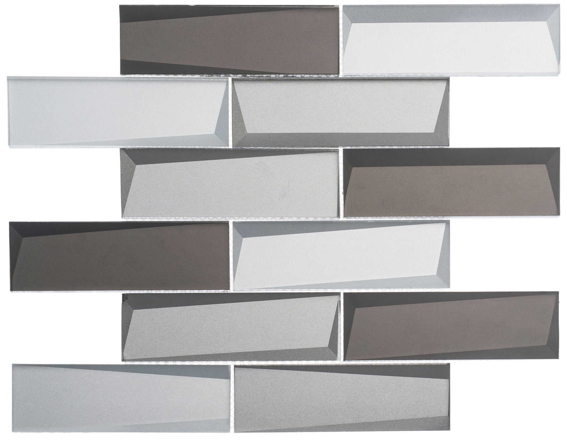 GLASS GEOMETRIC SUBWAY MOSAIC WITH ANGLED BACK-BEVEL