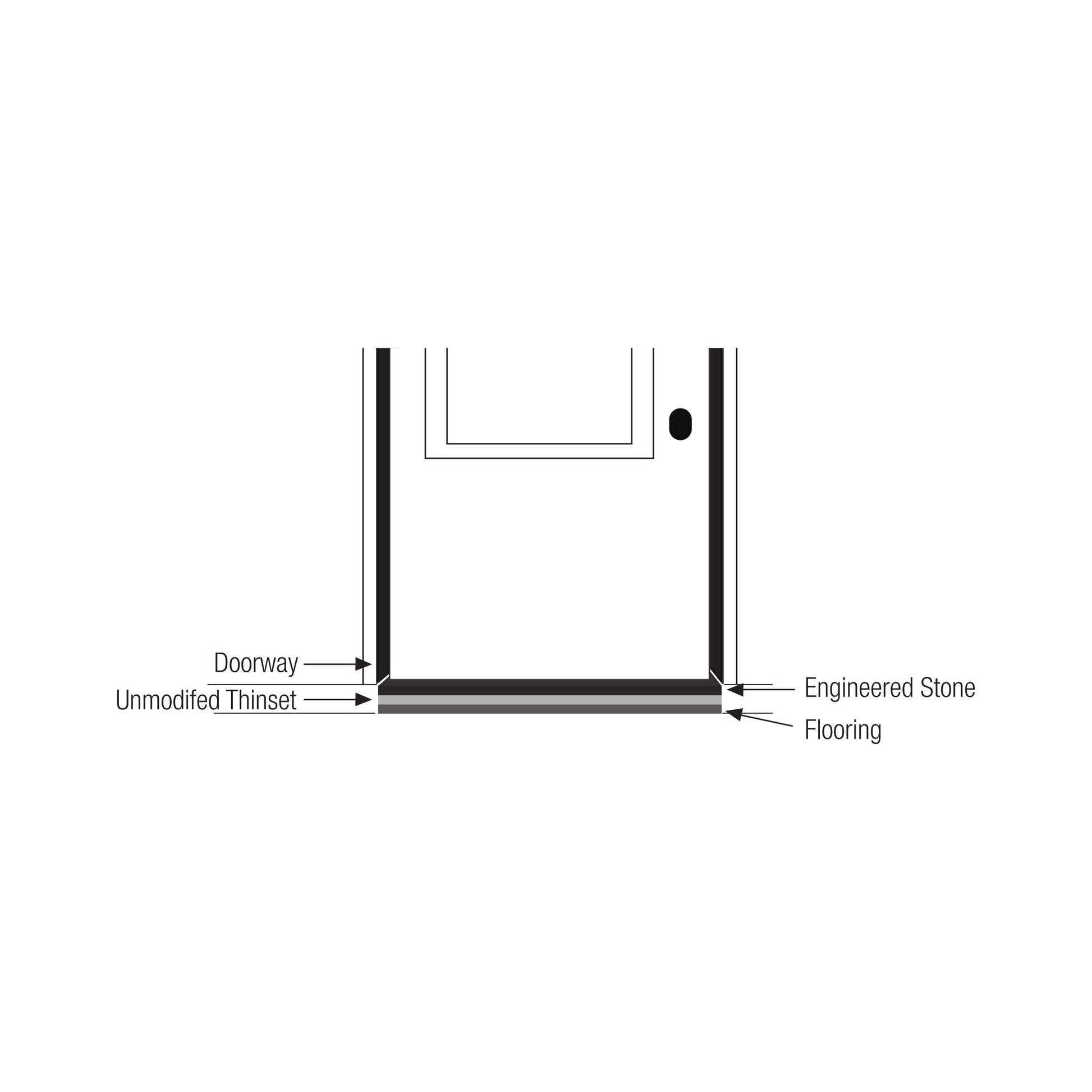 5. Adhere threshold to installation area onto thinset, ensuring that it is lined up correctly before pushing firmly to secure.